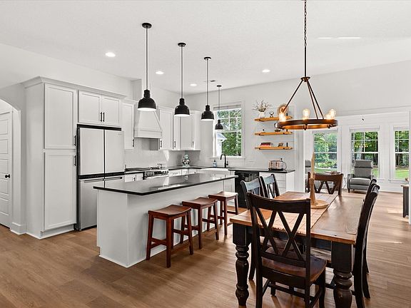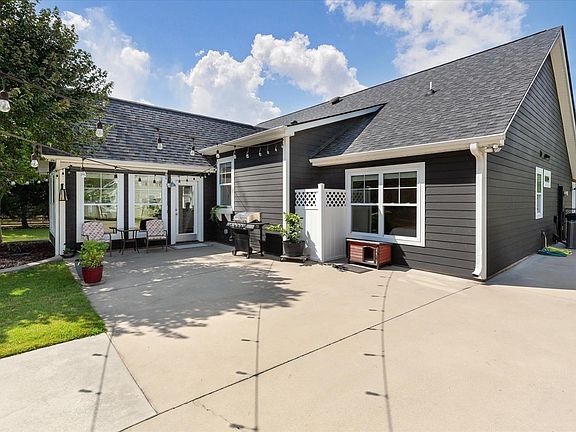 Gorgeous 3BR, 2BA Campobello ranch loaded with custom features! This delightful home dons contemporary style with open living space, custom built-in shelves, elegant gas log fireplace with shiplap, brand new warm/rustic luxury vinyl plank flooring in primary living areas, a deluxe kitchen featuring beautiful white painted cabinets, a generous island, apron style sink, black accents, designer lighting and brand new stainless refrigerator and smooth top electric range! Enjoy a walk-in pantry and separate coffee nook with its own cabinet space. Spend time relaxing in the cozy all-season sunroom with vaulted ceilings and plenty of natural light and country views. This former builder's home is situated on a picturesque and professionally landscaped lot with plenty of space to spread out! New black metal fencing with two double-gates enclosing the private back yard. Lawn is equipped with an irrigation system with 6 zones and concrete decorative curbing around flower beds. In addition to the 2 car attached garage, there is a detached garage on slab with electricity and a 25 x 15 patio for enjoying the great outdoors! Extra long and wide drive for recreational vehicles or additional parking. Home is equipped with an On-demand hot water circulating pump and central vacuum system. This home is truly "Move-In Ready" inside and out for $425,000. Say "goodbye" to burdensome HOAs!