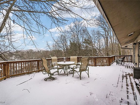 Beautiful setting with a peaceful view overlooking the Cuyahoga Valley. Wonderful contemporary home with vaulted ceilings, great for entertaining. Large open foyer entry. The kitchen has granite countertops, tiled backsplash and sliding door opens to the deck. Living room, dining room and fireplaced family room all have vaulted ceilings. 3 separate sets of sliding doors open to the expansive rear deck that extends the full length of the home. Main floor has 3 bedrooms. The larger ensuite bedroom has a vaulted ceiling, bath with a jetted tub and separate shower. On the lower level is large open space with a second kitchen, a full bath, 4th bedroom, second family room with wood burning fireplace. The family room opens to a large concrete patio with a big view. The 2 car garage is oversized. Perfect setting to enjoy nature and wildlife while relaxing outside on your deck or patio.