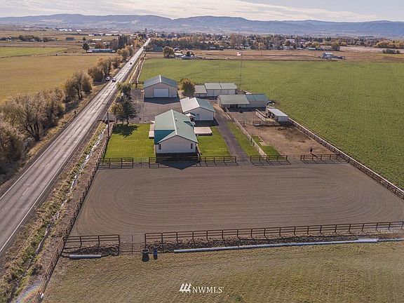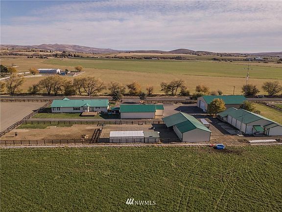 Outstanding property w/all the necessary buildings needed for home base, equestrian, farm, or general business use!*Main home w/2750 SF 3bd w/an office, beautiful view of your acreage & Mt. Rainier + huge bonus/workout rm. Yard area w/sprinkler system & field fencing for small animal safety!*New 5 bay finished garage *3-stall barn w/tack rm & 900 SF hay storage, dry lot, fenced pasture w/orchard gr. &100X200 arena.*50 X 70 utility bldg w/10 inch concrete flr. *1 bedrm apt w/upgrades *Additional finished 24 X 48 shop area & 24 X 48 bonus rm both w/Heat/AC.*Two separate 20 acre parcels w/2nd year seeding of alfalfa hay w/KRD irrig.(See suppl. page for more info) potential for 3 phase pwr. Fast Cable internet. Generator bk-up for all Bldgs.