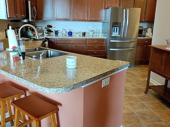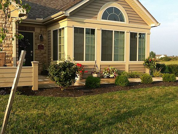 Condo with 2 bedrooms, a den, a sunroom, laundry room and lots of storage. The kitchen, dining, great room, master bedroom, sunroom have cathedral ceilings. Open concept design. Fireplace, walk in closet in master bedroom, tile shower in master bathroom are features.