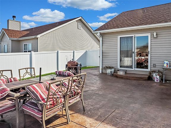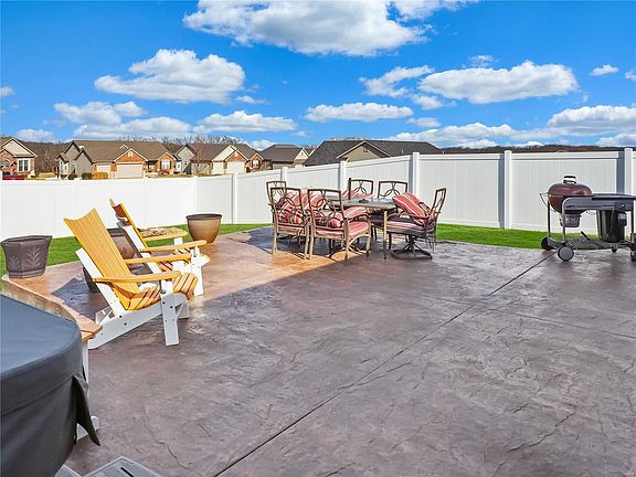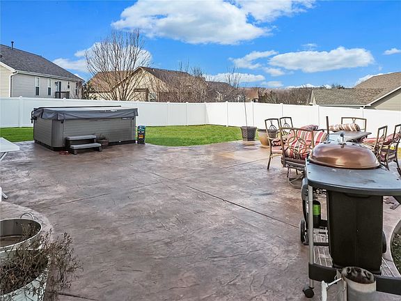 Beautiful upscale Ranch 3 bds, 2 bt. Entry foyer w/marble flooring & large great room w/newer wood flooring, vaulted ceiling, gas & marble fireplace. Large kitchen w/ceramic flooring, breakfast bar, custom 42" cabinets & coffee nook. Kitchen appliances stay, LARGE double-door pantry. Main floor laundry room is huge w/space for a fridge & more. Large master suite w/vaulted ceiling, walk-in closet, new marble shower (2/21) w/corner tub & TWO SEPARATE sinks w/granite countertops, adult height. Backyard is level w/white vinyl 6' fence, 2 oversized gates (5' wide), spectacular custom concrete stamped large patio w/6-person hot tub w/44 jets. The garage is drywalled and painted with custom workbench/workshop area, TV mount. LL is unfinished w/egress window for possible lower level sleeping area, safe room, rough-in bath. Excellently maintained, lots of upgrades & improvements. Roof is 1 yr old. Beautiful subdivision, great school district, easy access to shopping, dining & Hwy 55.