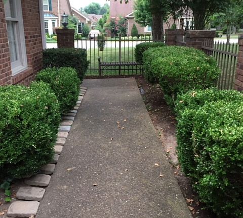 - EXTERIOR FEATURES: Landscaped, Trees, Exterior Lights, Exposed Aggregate Drive, Fenced Yard, Patio, Garden Space, Courtyard, Aggregate Walks, Brick Walks
