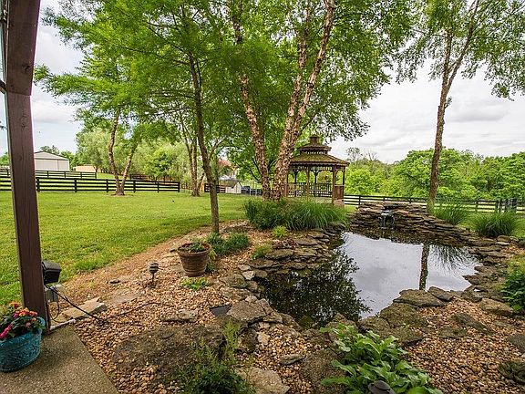 Welcome to the country & only 3 minutes from downtown Nicholasville & 18 minutes from Man O War! Another unique location feature is walking distance to all 3 West Jessamine/Rosenwald schools! Rare opportunity of 5 acres to relax and enjoy! Bring your horses too! Beautiful custom home with upgrades & updates galore! Designer Granite, backsplash and stainless kitchen open to a large breakfast area and Great room. Formal living & dining rooms and home office with French doors. ALL Hardwood on 1st floor! New master bathroom with tile shower, Jacuzzi tub, raised double granite vanity and hardwood. Loft bonus area on 2nd for kids tv area or many functions. Master bedroom with deep treyed ceiling & balcony and 3 additional bedrooms and 3 full baths complete the 2nd floor. You will love the gazebo on the back patio overlooking the beautiful pasture & peaceful Koi pond with waterfall! 1,200 sq ft pole barn, electric gated entrance & an INCREDIBLE value! 24 hour kickout clause in place.