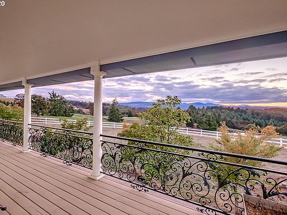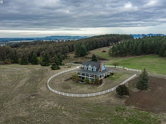 Beautiful home and acreage in the heart of the Willamette Valley! 88 acres of incredible views, fertile soil, timber and tillable land surrounded by local vineyards. Custom built open concept home with a fully finished daylight basement that opens to the landscaped yard & pond just below the covered wrap around porch that circles the entire main floor. Stainless Steel appliances, hardwood floors, AMAZING views AND a 6,800 sf barn with 4 stalls, loft and dry storage w/ concrete floors.
