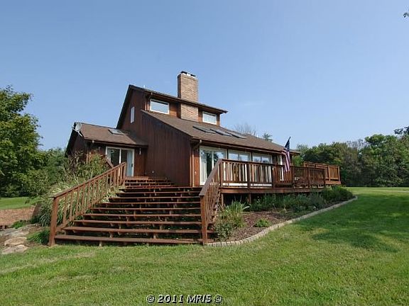 East by Southeast passive solar cedar contemporary home on 3.3 ACRES WITH MOUNTAIN VIEWS AND KOI POND. Great room with free standing wood stove and stonefaced chimney. Wraparound decking and back porch. Heat pump new in 2006, roof new in 2006, septic renewed 2005. Loudoun Wireless or Hughe snet for internet. Directe TV. Five minutes to commuter train.