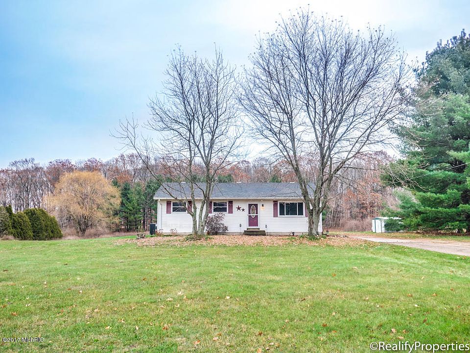 Charming home! Completely remodeled 3 bed 1 bath ranch home! This home features main floor laundry, New AC, Newer roof, newer vinyl windows, furnace, water heater, vinyl siding, Flooring, updated electric, and granite counter-top. All appliances stay, full basement, 3.7 acres! Home is move in ready. Close to expressway, 15 minutes to Grand Rapids. Great country setting, yet close to White Pine Trail to go to Rockford or north.