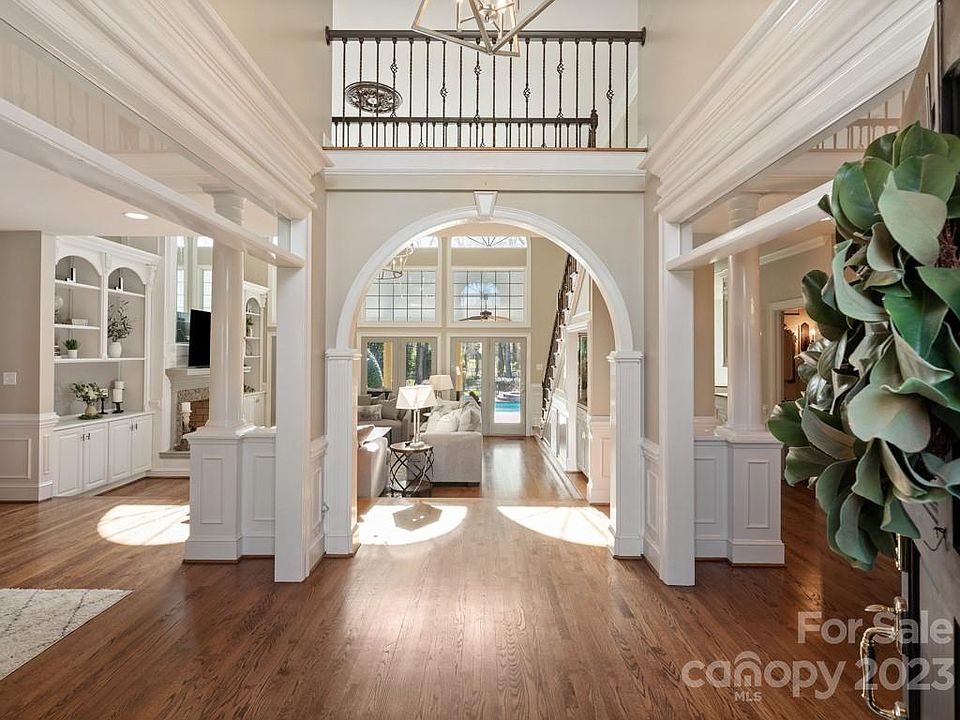 Stunning home in Providence Country Club community with resort style backyard featuring swimming pool, hot tub, fireplace and fabulous covered porch. Wonderful open floor plan with nice updates throughout. Primary suite on the main with custom closets and fireplace. Spacious secondary bedrooms on the second floor with huge bonus room. Large Culdesac lot with circular driveway.