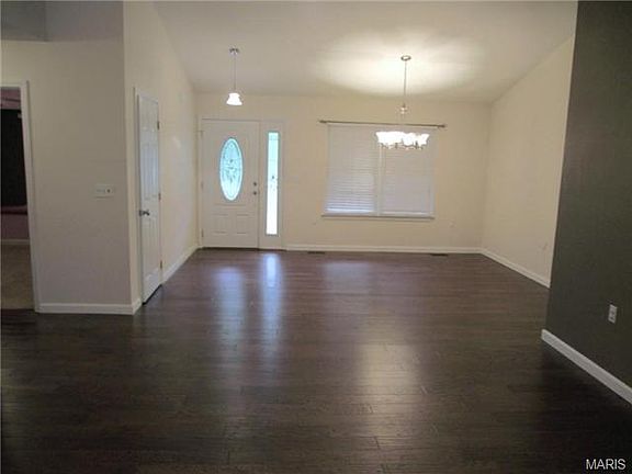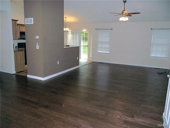 Outstanding home is waiting for you! Lovely home on 3.09 +/- acres. Covered front porch and pretty glass inset entry door welcome you to this home. Large great room has vaulted ceiling and lovely wood floors. Great room, dining room and kitchen are all very open for easy entertaining and a feeling of spaciousness. Dining room has wood floors and two windows overlooking the rear yard. Big kitchen with convenient pantry, cheerful breakfast area with sliding glass doors to the rear deck, lots of beautiful cabinets and counter space, and more. Convenient main floor laundry room. Large master bedroom with double bowl sink and separate tub and shower. Two more big bedrooms and another full bathroom on the main floor. Full, walk out basement has rough in bathroom and two sets of French doors that walk out to the rear yard. Lots of extra storage or living options in the lower level. Two car garage. Big wood lot backs to trees for added privacy. Country living, convenient to town.