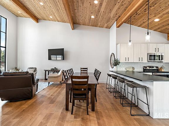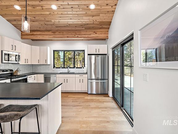 Gorgeous home sits on inlet of Cascade Lake w/ lake access right outside backdoor w/ trail that leads to sandy lake beach. Newer, custom-designed home with stunning soaring ceilings w/ cedar planks, oversized windows, S/S appliances, & LVP flooring make this home open, bright and inviting. Main level features Master bedroom, 2 more bedrooms & 3 full baths PLUS radiant floor heat that keeps home cozy in the winter. All 5 Bedrooms, Loft & upstairs living rm have ductless AC units to customize individual room temp. Upper level has spacious loft/bonus room w/ half bath and separate dwelling unit w/ 2 bedrooms, full bath, living area, kitchenette & balcony. The circular driveway provides ample parking for RV & trailers and the expansive concrete back patio provides the perfect space for large gatherings surrounded by trees for plenty of privacy.