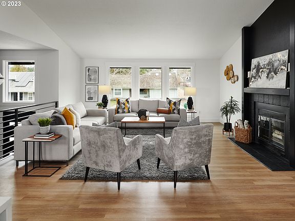 Back On Market at no fault of seller... Completely remodeled mid century modern design. Open concept with kitchen/great room with oversized quartz waterfall island. Custom cabinetry. All new windows, doors, siding, flooring, trim. Updated HVAC, central air. Large backyard with custom designed putting green. Too many upgrades to list. EV charging available in garage. Prewired for Hot Tub. Must see for yourself. Seller is licensed realtor in State of Oregon.