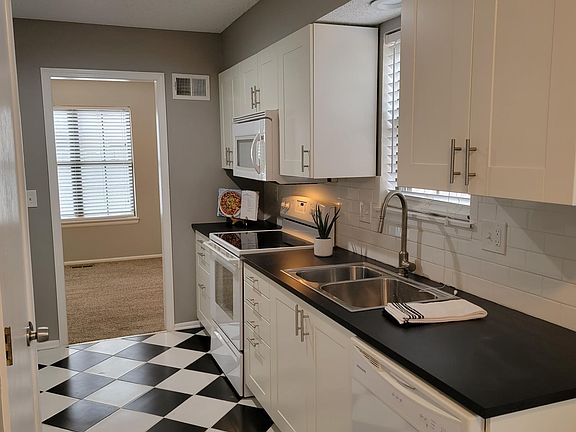 Updated townhouse in the Hampshire Square subdivision! Two car garage! Ranch floorplan with 2 main level bedrooms and 2 main level full bathrooms: one with a step-in shower and the other with a shower/tub combo. Primary suite has 3 closets! Living room has a cozy fireplace and is open to the dining area. The kitchen has been updated with white cabinets, black counters, and a checkerboard tile floor. Breakfast room off the kitchen. Fenced back patio area. Included in the rent: lawn maintenance, swimming pool, curbside trash and recycling, snow removal if over 2 inches, and tennis courts. Shawnee Mission School district. Smoke-free. Sorry, we do not accept vouchers or work with Section 8. Available: Immediately. Application Fee: There is a non-refundable application fee of $75 per adult (18 or older). Co-signer is $45. Each additional adult is $45. Each adult must fill out a separate application. Some pets allowed if under 20 pounds and with a required pet fee: Onetime expense: $250 Non-refundable Fee, Recurring expense: $20 Per Month Rent / Per Pet