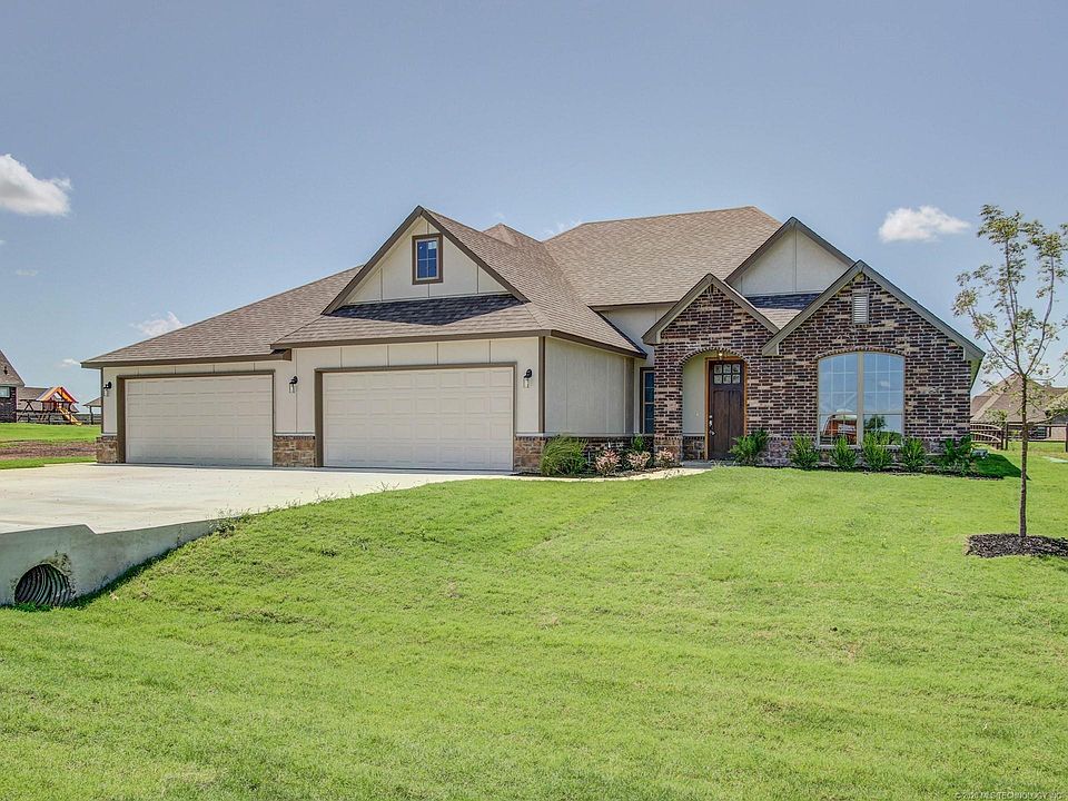 New construction. Full Brick home, all on 1 story! Just off Hwy 75. High ceilings, 3 cm granite, Knotty Alder thru out, Sprinklers, high end trim, extended patio, 5 car garage and tankless H20 htr. Open floor plan, has Cook's kitchen gas stove SS appliances & pantry. Private Master suite w/ luxury bath. Pictures are a rendering of similar floor plan. All on almost 1/2 acre. Formal dining and office Sqft. is about 2641 more or less all on 1/2 acre lot more or less.