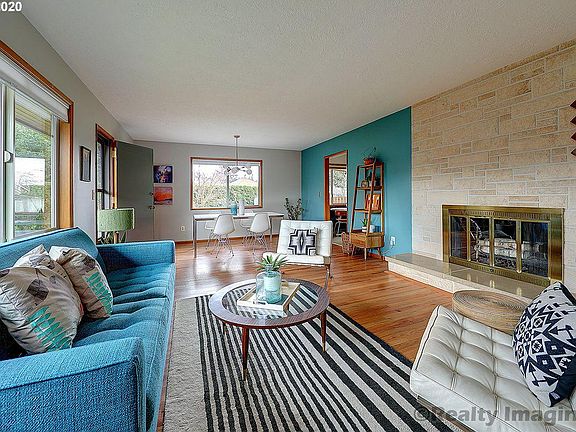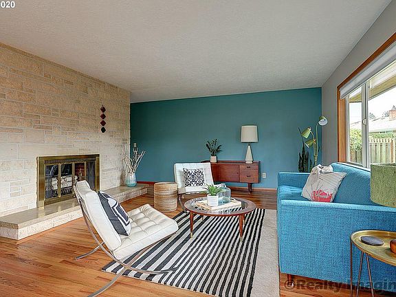 Classic Mid-Century Modern home with well updated systems. Gleaming hardwood floors, open floor plan, light and bright throughout, double-pane windows. Lots of vintage details still intact. Master bedroom/bath, great storage, full basement has spacious family room with fireplace, tons of storage, office and laundry. Roomy, attached double garage, gorgeous yard with patio. This quiet cul-de-sac is close to Russell Elementary School and John Luby Park. Easy access to the Gorge and Mt. Hood. [Home Energy Score = 7. HES Report at https://rpt.greenbuildingregistry.com/hes/OR10079490]