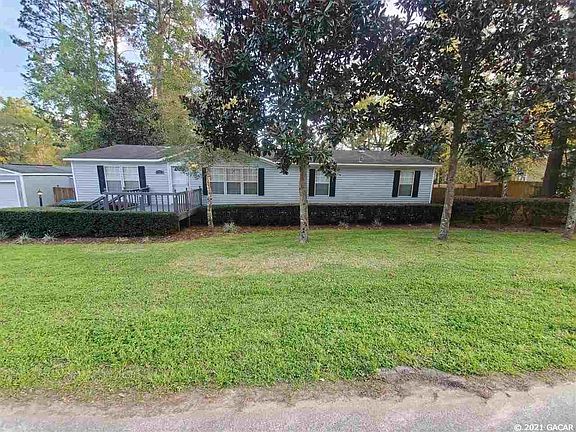 This super cute 3 bedroom 2 bath home is in an amazing location near downtown Alachua! Master suite has a huge bathroom and closet and the split floorplan allows for privacy. The kitchen is spacious and has stainless steel appliances and is great for entertaining. Imagine stepping out back onto a wood deck to enjoy your morning coffee or evening wine. In addition to all this the garage, that could also be used as a man cave, she shed, or workshop, has a remote, electricity and AC which makes this property even more special and unique.