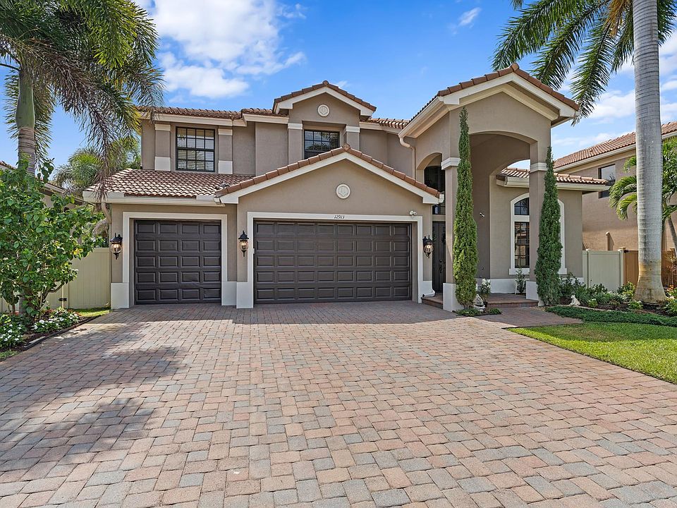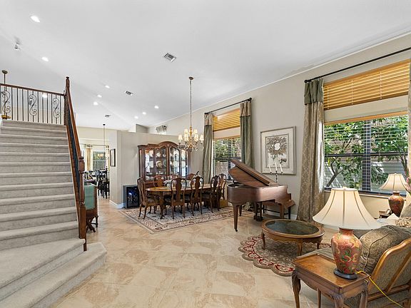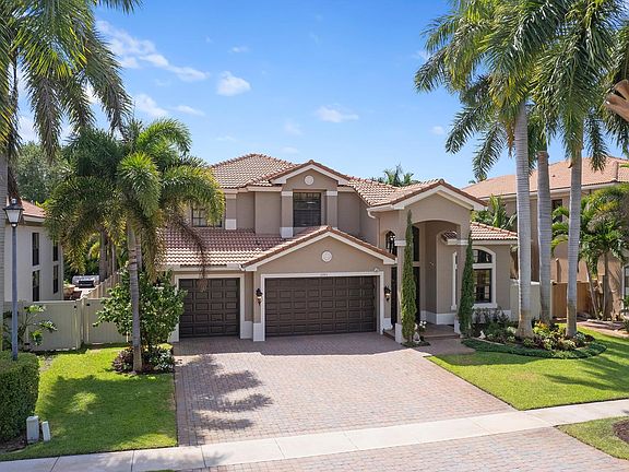 Fantastic 5BR/4BA pool home with office/den located just minutes from downtown Delray in the boutique community of Montreux with only 39 homes. First floor includes formal living/dining area adjacent to kitchen that opens to spacious family room and breakfast nook over looking the pool. A large primary suite on first floor with walk in closets, dual sinks and separate tub/ shower. An additional bedroom and full bath as well as office/den completes the first floor. Upstairs includes 3 bedrooms and 2 baths with one being an ensuite bathroom. Tropical private fenced backyard with covered patio and retractable awning all make for enjoyable days out by the pool. This home has all impact glass and 2 newer AC's installed in 2019 as well as a water heater installed in 2020. Truly a great home!