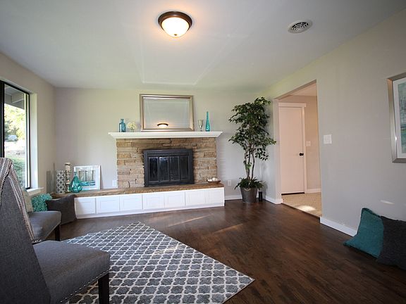 This nicely updated three-bedroom rambler is cozy and bright with refinished hardwood floors, stacked stone fireplace, skylights, and one car garage with workbench. Updates include newer water heater, newer furnace, newer electrical panel, and kitchen with quartz countertops, cabinets with slide out shelving and garden window. Entertain guests on the spacious deck in fully fenced backyard. Huge lot, storage shed and low maintenance landscaping. Close to freeways and Light Rail for easy commute.