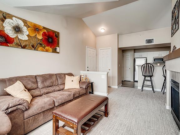 An amazing top floor condo in Ironstone, in the great town of Parker, Colorado! This 2 bedroom, 1 bathroom, end unit, is a great find! All appliances will come with this unit along with the washer and dryer. The living room has a gas fireplace and the open floor plan, with vaulted ceilings, makes it the place for friends and family to meet! The unit has a covered balcony with access from the dining room and the second bedroom. The unit also has an adjacent storage closet for your extra belongings. The Ironstone community has a lot to offer! It has a private, community pool, clubhouse and gym. There is plenty of off street parking available. Come see for yourself!