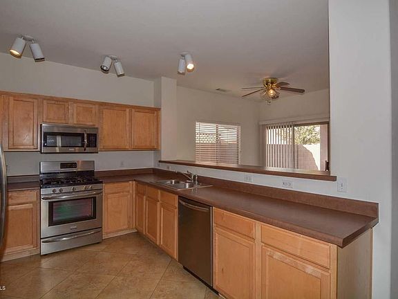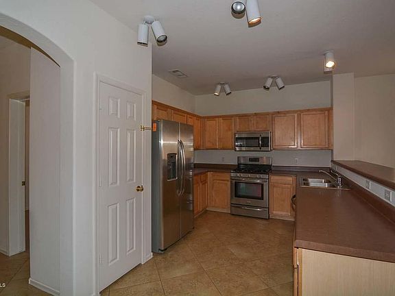 Charming home with great open floor plan. With 1,588 square feet this move in ready home features 3 bedrooms plus a den! Large great room with kitchen and dining area feature prominently when you enter the home. Kitchen has lots of useable workspace area including a raised counter top, Stainless appliances and pantry! Very nice sized dining space off the kitchen with bright open windows. Convenient den just off great room - perfect for an office or play room. Master is split from other bedrooms and has a walk in closet plus en suite bath with separate tub and shower. Two additional bedrooms and a laundry room with shelving complete the interior. Nice sized back yard completely fenced with a covered patio. Solar panels a real plus - will be paid in full!! This home is a real find!