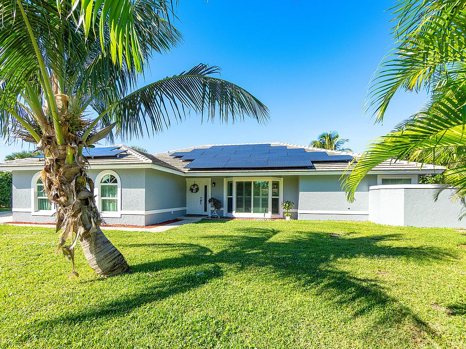 Stunning waterfront pool home with access to the Intra Coastal Waterway. This 4 bedroom 3 bath gem is located on a peaceful cul de sac in the much desired community of Juno Isles. Breathtaking views from almost every room of a tropical paradise. This open, split floor plan is great for entertaining. Imagine launching your canoe/kayak from your own backyard. Permitted private docks are allowed to accommodate up to a 26' boat. Freshly painted inside and out. New granite countertops, stainless steel appliances, lighting and ceiling fans. New laminate flooring throughout. New A/C unit. New roof installed in 2018. Partial impact windows. Solar panels. Irrigation system. Private pool (with newer pool pump), screened in patio, and bathrooms in need of updating but fully functional. Listing will be ACTIVE Friday, Dec 8th. Showings will be begin with an Open House on Sunday, December 10th from 11-2.
