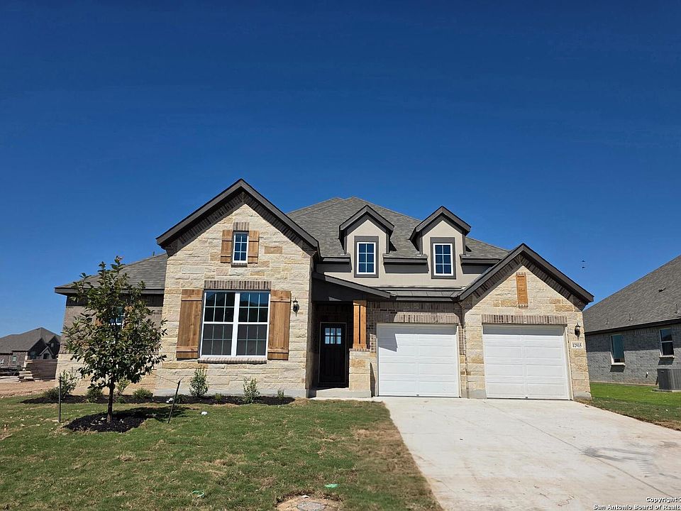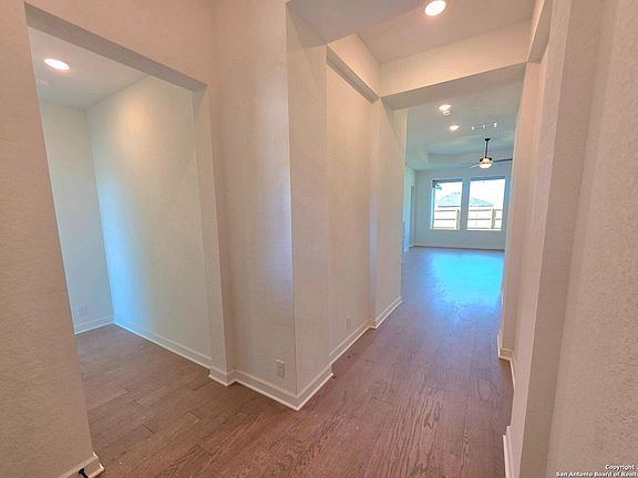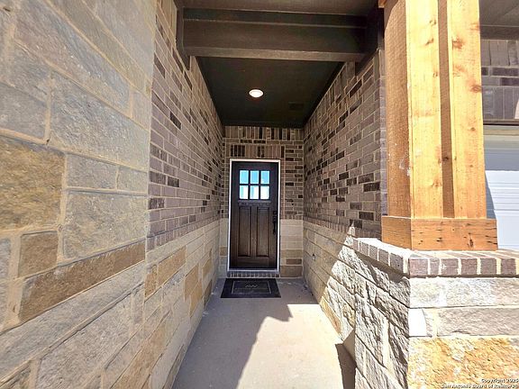 This charming one-story home is designed to combine comfort, style, and functionality for everyday living. The gourmet kitchen, featuring quartz countertops, upgraded cabinetry, and a walk-in pantry, opens seamlessly to the spacious family room, where large windows fill the space with natural light and provide serene backyard views. The secluded primary suite offers a private retreat with an oversized shower, garden tub, dual vanities, and a generous walk-in closet, creating a space for relaxation and rejuvenation. Three secondary bedrooms with ample closets are paired with two well-appointed shared baths, ensuring comfort and convenience for family or guests. Outside, the covered patio invites effortless outdoor living, while the fully landscaped yard with a built-in sprinkler system makes entertaining, unwinding, and enjoying life in your home simple and inviting. This home features design selections thoughtfully curated by our professional studio team. Each finish, from flooring and cabinetry to countertops and special touches, is chosen with care to create a cohesive and beautifully balanced look. Guided by timeless design principles and inspired by modern lifestyles, the result is a home that is both stylish and welcoming from the moment you step inside. This home is located in Saddlebrook Ranch, a master-planned community in the charming city of Schertz-named one of CNN/Money's top small towns. Enjoy easy access to I-35, premier shopping, dining, and Randolph Air Force Base. Planned amenities include a sparkling pool and playground, perfect for family fun. With the highly regarded Schertz-Cibolo-Universal City School District nearby, Saddlebrook Ranch offers the ideal blend of community, convenience, and small-town charm.