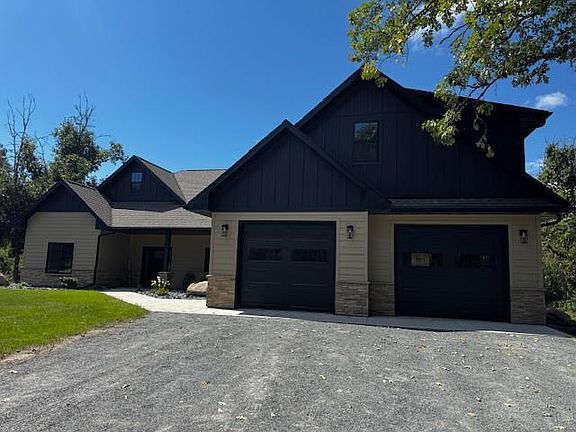 This newly constructed three-bedroom home boasts an array of exceptional features designed for comfort and elegance. Upon entering the living room, you are greeted by the grandeur of this home with a sense of spaciousness. The kitchen is adorned by upgraded full-height cabinets offering abundant storage, hard surface countertops, and a large island perfect for meal preparation and casual dining. The living room, kitchen, and dining area share vaulted ceilings, enhancing the airy and open feel of the space. The living room is further accentuated by an electric stone fireplace with a log mantle and flanking cabinetry, creating a cozy yet sophisticated atmosphere. The primary suite features a walk-through closet, a custom tile shower, a double sink vanity, and a linen closet. A versatile flex room, complete with a closet, offering the potential to be transformed into a formal dining room or a den/study. There is also a home office that could be a fourth bedroom! The home also has upgraded, higher-end flooring and includes a fully heated and finished garage, ideal for year-round use. Additionally, there is a 5-ton air source heat pump, an expansive bonus room above the garage, the exterior is crafted with stone, LP SmartSiding, and board and batten peaks, showcasing a blend of durability and aesthetic appeal. Complementing the exterior design are gutters for effective drainage, lawn edging and rock around the house, a cement patio in the back, and a crushed granite driveway that ensures lasting durability.