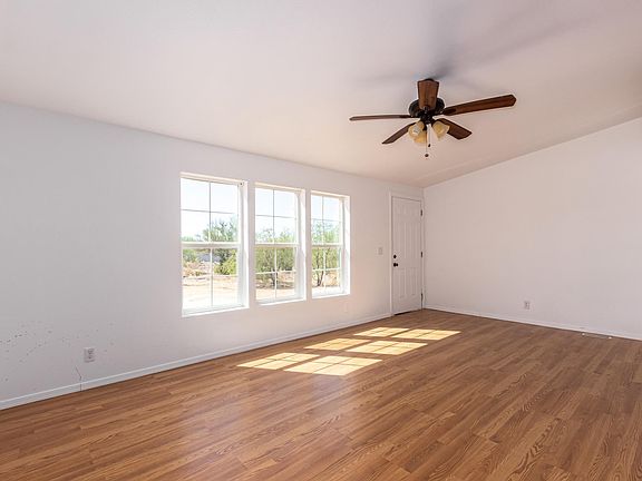 Mountain Views & surrounded by natural desert! Meticulous Home on over 3 acres with soaring ceilings, brick fireplace, handsome engineered wood floors, ceiling fans, & soothing palette. Plethora of gorgeous kitchen cabinets, stylish counters, breakfast bar, & formal dining area w/upgraded lighting. Perfect home for entertaining! Plush carpet in the master bedroom w/engineered wood floors in the 2 other bedrooms, ample closets, & 3 pristine baths. Create a desert oasis & Horse sanctuary! Enjoy Country Living at its Finest!!