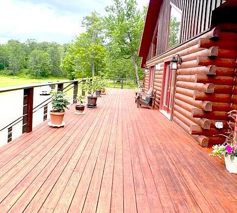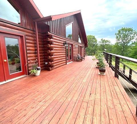 Buyers agent verify all information and measurements. This property has 3 pids, 120 acres. Whether you enjoy hunting, bird watching, or just the outdoors this is the perfect home or retreat. The house which is nestled in a clearing and surrounded by a terrain that is absolutely beautiful with its oaks and maple studded hills and ridges. There are turkeys, ducks, deer, and an occasional bear, wildlife and nature to perfection. The 6 spacious bedroom's and 3 bath home features an open upper main level that is open with a stunning floors to ceiling fireplace. Lower level walkout finished featuring a large family/game room, bar, Fireplace, 4 bedrooms and a fabulous sauna. Numerous windows to enjoy the beauty of the property, not to mention the spacious deck that spans the front of the home. This home has a lean 2 fenced area and a watering system. Animal perfect. Property backs up to 100 acres landlocked state land. If you love nature and a beautiful spacious home this is it. Come see.