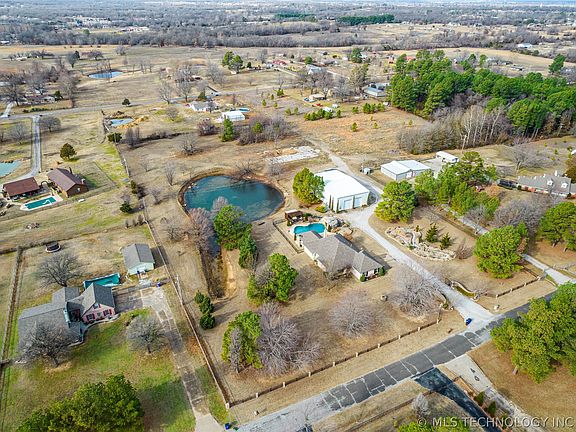 Once you drive through the gates of this resort style property you will never want to leave! Beautifully updated 3 bed, 2 bath, 3 car garage home situated on approximately 5 acres with additional 3.5 acres available. Other amenities include a 50x80 shop with all necessary RV hook-ups, overhead doors, and climate controlled office w/bathroom; climate controlled greenhouse; stocked pond; and large salt water gunite pool with grotto and spa; outdoor living with kitchen and fireplace. Home updates include: remodeled kitchen with custom cabinetry, Kitchenaide appliances; hardwood floors, flagstone floors, Pella windows, H2O in 2018, safe room, Lennox 2-stage HVAC, custom barn door, spa-like primary suite, generator to service 90% of house, pool, and shop. Way too many features to list! One owner, custom built, and meticulously maintained.