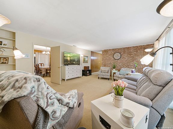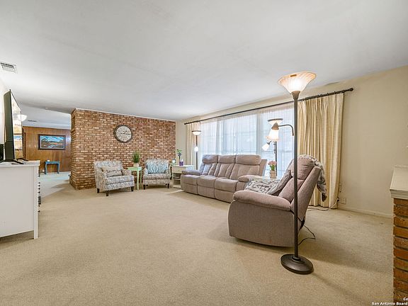 Great location inside San Antonio city limits, this 1-story ranch-style home offers 3 bedrooms, 2.5 bathrooms, 2 living areas, 2 brick fireplaces w flagstone hearths, eat-in kitchen, dining area, enclosed porch, ceiling fans & attached rear garage. This 1+ acre property is filled w beautiful mature oak trees & a huge yard. Inside Laundry room/bathroom located near the kitchen. NorthEast ISD. Located close to Hardberger Park, Medical Ctr, Castle Hls Shopping, Airport, Restaurants. Estate Sale - sold As Is.