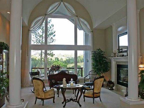 Striking elegance & a gorgeous view setting located on 1.87 acres in The Ridge at Hangman overlooking the 4th green of the Hangman Valley GC. A columned entry w/a grand circular staircase & windows from flr to ceiling w/tremendous golf, mtn & territorial views, and a barrel ceiling w/accent lighting. The cooks ultimate dream kitchen has rich cherrywood cabinetry, top end appliances, a view eating nook & views from family room. The mstr ste features a sitting area w/view, fplc & a columned mstr bath w/view.