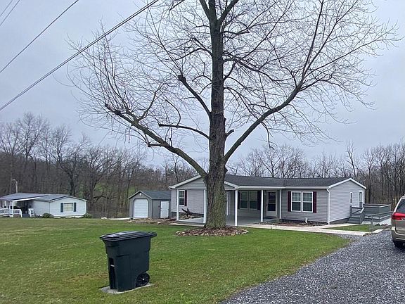 Whether you're looking for a permanent residence or a vacation getaway we've got you covered with an affordable option. This 3 BR, 2 BA doublewide is situated on a one-acre rented lot within minutes to Raystown Lake and about 15 minutes to town. The kitchen features all stainless steel appliances, large bar area with bar stools, and is open to living, dining, and family room area. Family room boasts a stone fireplace. Enjoy those summer evenings relaxing on the covered front porch with a ceiling fan. Also included with the doublewide is a 14'x30' shed with electric and garage door opener, which could be used as a one-car garage for a smaller car, storage, or a workshop. There is ample parking on the gravel parking area and room for that boat!
