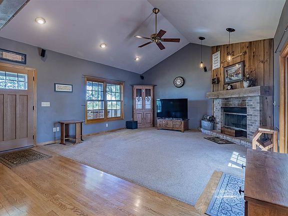 Looking for country? Here it is! Winnebago Schools. Zoned Ag. Sharp, well cared for 2-story on 2.5 acres with meandering creek. High & dry. Welcoming front porch. Great room with cathedral ceiling, 2 skylights, corner fp, slider to deck, hot tub & gorgeous country views. Open concept to din room & kitchen with hardwood floors. Kitchen with lots of cabinets w/pullouts, generous cntr space. Spacious 1st floor master with hardwood, private bath updated with oversized shower, jacuzzi. 2 bdrms, craft rm & office up. One with cathedral ceiling, 2 skylights. 2nd bdrm up does not have a closet. 1st floor laundry. Spacious garage 25x30. Rec room mostly finished. Updates-well 8/2020, most newer windows, roof & siding 2018, furnace CA 17. Beautiful tranquil, serene setting. Bring the Horses! Dimensions approx. To be surveyed 2.5 acres. Assessor provided approx taxes for property for part of PIN# 1325100001. May be possible to purchase additional 2-1/2 acres for additional price. 3rd bd no closet.