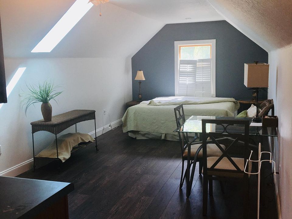 Great studio apartment above the garage with your own entryway, already furnished with the basics: A king size bed and mattress w sheets, quilt and 2 king size pillows, side tables with lamps, breakfast table and chairs, large wicker chair w cushions, tv stand table, appliances for the kitchen which includes a crockpot, an electric griddle and an electric hot plate, a toaster, coffee maker, small refrigerator, dishes and silverware as well as some other kitchen necessities such as a can opener, hand towels and oven mits etc. Closet in the bathroom, shower tub w removable handheld showerhead. Only a few items left you may want to add like your own TV and/or decorative finishing touches. Located in the beautiful Lake Hart/Lake Whippoorwill rural community of Lake Nona where it's peaceful and quiet, yet close by dining/shopping/ attractions and the interstate highways. Owner pays for utilities, ie. water and electricity as well as internet services.