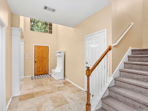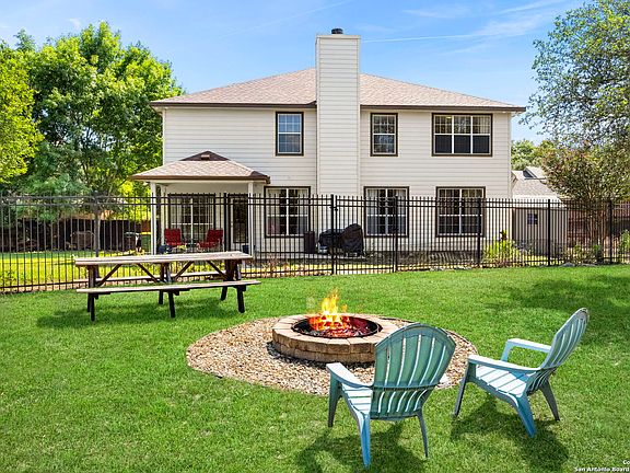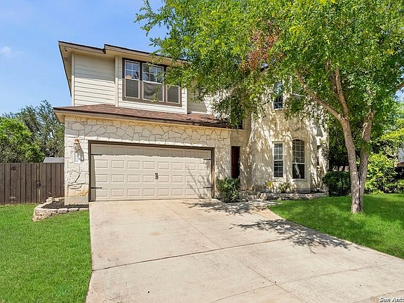 Cedar Springs Cul-de-Sac Gem! Discover this beautiful 2-story, 5-bedroom, 3.5-bath home with a 2-car garage in a desirable neighborhood in Helotes. Situated on a spacious .55-acre lot at the end of a cul-de-sac, this home backs up to a serene green belt, providing extra privacy and space. The stunning interior features a bright and fresh atmosphere, complemented by ample windows that fill the home with natural light. The living room boasts a cozy fireplace, while the open layout offers plenty of space for gatherings with loved ones and guests. The large island kitchen includes an induction cooktop, built-in oven and microwave, as well as a stainless Samsung dishwasher. It's a great place for family and friends to gather. The large primary bedroom features a tray ceiling and a spacious en suite bathroom. Additional rooms provide generous space for household members and activities. The garage door is top of the line, (insulated with metal interior skin). The beautiful backyard, ideal for Texas outdoor living, includes a wrought-iron gate that extends your yard space. With solar panels on the home, energy efficiency is a plus. Enjoy the convenience of being close to excellent NSID schools, Six Flags, and various entertainment options. This home perfectly blends comfort, style, and a prime location.