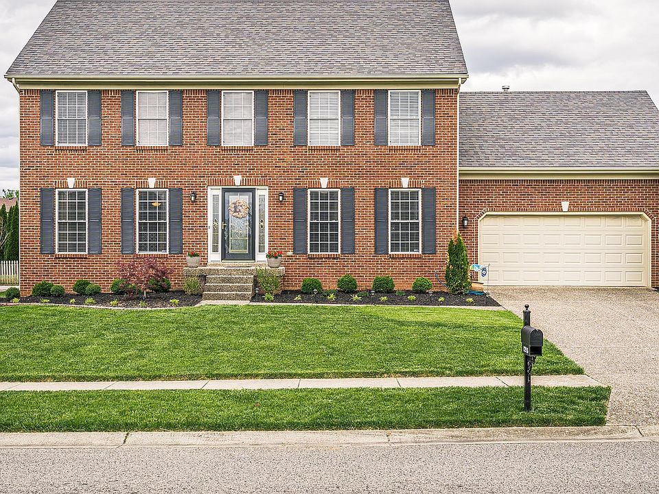 Come enjoy this stately and updated two story brick home in the desirable neighborhood of Forest Springs. With sophistication and style, this immaculate home is enveloped in natural light and comfort. The first level encompasses AquaGuard engineered hardwood flooring, a great room, formal dining room, eat in kitchen, powder room and laundry room. The kitchen has white cabinets, new granite countertops, black appliances, a center island, and new fixtures. The great room hosts a cozy fireplace with a barn wood mantle, a trayed ceiling and plenty of room for two sitting areas or office space. The formal dining room is finished off with wainscoting and a new chandelier. Up the stairs you will find three nice sized bedrooms and the master suite. The master bedroom is large and has a walk-in closet with a window, dual vanities and soaking tub. Enjoy more entertaining space in the professionally finished basement with two windows, a new bar made with fencing from historic Whitehall, industrial shelving, space for a kegerator and a dartboard. Step outside to enjoy the deck, patio and spacious flat backyard. Plenty of room to entertain and play. A gracious home in a lovely neighborhood with a swimming pool and clubhouse. It's close to shopping, restaurants, schools and 20-25 minutes to downtown. Seller is offering a one year First American Home Warranty.
