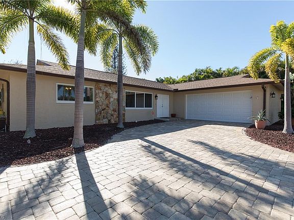 Paradise among the palm trees! Beautifully renovated home offers the best of living our Florida lifestyle! Tucked away in a charming area close to water & the beaches of Fort Myers Beach & Sanibel. Easy bike ride to Sanibel Causeway, shopping, you name it! Home has been tastefully remodeled in 2016 - gorgeous new kitchen w/beautiful cabinetry, granite counters, Kenmore Elite SS appliances, breakfast bar, & tray ceiing. Both master & guest bathrooms also updated w/gorgeous tile showers & glass doors; granite vanities & new toilets.Enormous master bedroom w/plenty of closet space. Bright open floor plan offering large casual dining as well as formal dining. Lots of natural light; spacious guest bedrooms; tile floors through out except master and rear guest bedroom; Inside laundry with washer & dryer & lots of cabinets w/granite counter. Feel safe & secure with its hurricane impact windows, impact doors - even garage door! Oversized side loading double garage w/pull down stairs and more storage cabinets. Beautiful pavered driveway with extra pavered parking area on side! Concrete walkways & large backyard patio surrounded with palm privacy hedges! Sidewalks too! Easy to show!