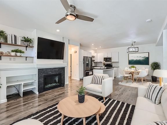 Welcome to your DREAM home in the highly sought-after Hunters Glen community! This stunning 3-bedroom, 2-bathroom condo perfectly combines modern updates with a welcoming, open floor plan. Step inside to high ceilings and a cozy gas fireplace that invites you to relax and unwind. This home has too many upgrades to list! The beautifully remodeled kitchen features waterproof laminate flooring, granite countertops, a chic tile backsplash, upgraded white shaker style kitchen cabinets, and fingerprint-resistant Whirlpool appliances, making it a chef’s delight. Both bathrooms have been elegantly updated with new soft-close vanities, new tile, and newer bathtubs. The spacious primary bedroom with a 5-piece bath has newly updated paint, upgraded carpet, a modern ceiling fan, and boasts a custom walk-in closet. Enjoy your morning coffee on the charming covered deck. This ground-level ranch also includes a newer hot water heater, a detached 1-car garage (with power), and access to the community pool. With easy and close access to an endless number of nearby scenic trails, Eastlake Nature Trail, Platte River Trail, Highline Canal trail and the picturesque Hunters Glen Lake just blocks away, this condo offers an unbeatable lifestyle in a prime location. Don’t miss the chance to make this fabulous home yours!