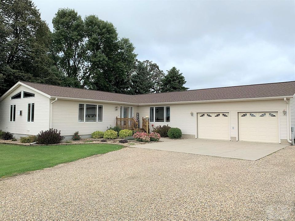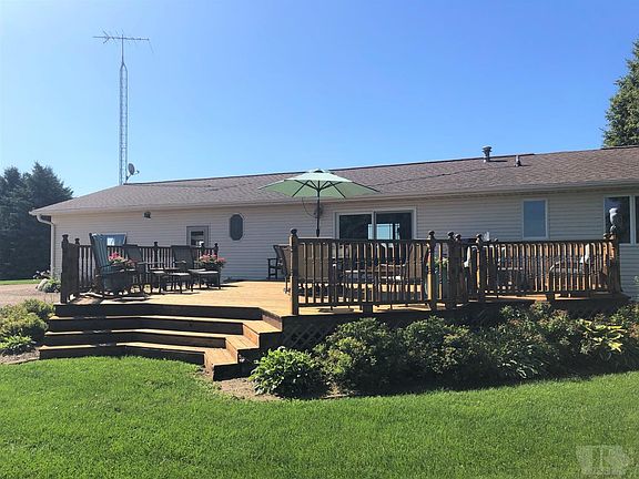 ROLLING HILLS AND COUNTRY COMFORT! Plenty of room to roam on over 19 acres of paradise. Haugen Wildlife Refuge with 80 acres of hunting ground borders on the west and Kuhn Wildlife 80 acre Refuge close by to the east. Ranch style home features Anderson windows, steel siding and awesome Great Room addition with knotty Cedar vault ceiling and gas log fireplace. Spacious dining room ideal for large gatherings. Wonderful finished lower level with large family room, bonus rooms and bath. New flooring in dining room, kitchen & hallway. Updated kitchen with new countertops & kitchen sink. New pressure tank, submersible pump and water lines into well in 2017. Spacious deck for entertaining and BBQ's. 54x100 steel utility building built in 1998. Additional 20x100 out building. Approx. 15 acres in CRP. Approx. 2.5 acres of beautiful greenspace surrounds homesite. Escape to this peaceful setting & enjoy all that nature offers. Showings by appointment only.Call a Realtor today to schedule yours!