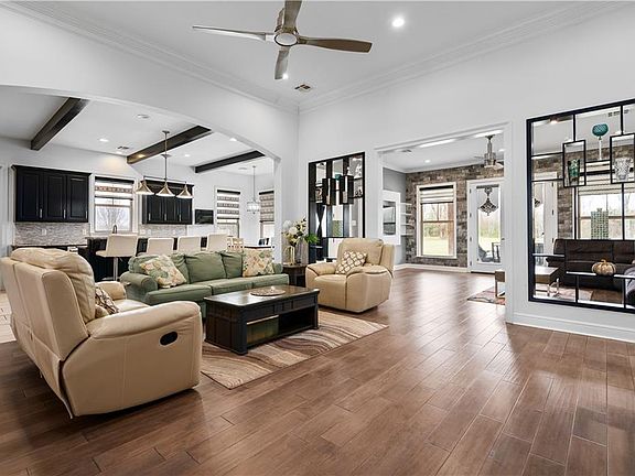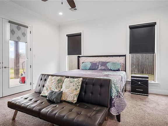 EASY TO VIEW NOW! WHY BUILD when you can BUY this custom-built Thomas Bolton home on oversized 0.78-acre lot in private gated community? Oozing with modern flair, special features and amenities of your dreams, this open floor plan offers soaring ceilings to 10 and 12 feet, thick crown moldings, plentiful windows with custom shades and a soft soothing color palette of grays and whites accentuated with darker touches. Luxe designer details flourish in every sweet "nook and cranny" from the lighting fixtures to cabinetry hardware, accent walls and built-ins. The 3256 square feet of living space includes a wing off the kitchen designed with 2 bedrooms and 1 bath offering privacy and space for the in-laws, live-in help or studious college students. Another 3 bedrooms including the primary suite and 2 baths are located across the expansive living areas on the right side of home. Another bonus: the easy-maintenance upscale wood and tile flooring with carpet in bedrooms. Expansive kitchen offers oversized granite cooking, serving and seating island, adjoining breakfast area and plethora of cabinets and storage. Pantry/laundry area includes extra work and storage space and designated spot for extra fridge or freezer. Outside, a truly oversized covered patio/porch, complete with sink, granite counters and built-in gas grill, is a perfect spot to gather and converse while enjoying the sweeping lot which stretches to the back fence. Other features include gas fireplace, double garage with storage, formal dining that can seat a crowd, welcoming entry/foyer, and extensive closets. Alarm and video surveillance systems. All City of Alexandria utilities including gas. HOA fee $350 annually. Built in 2018.