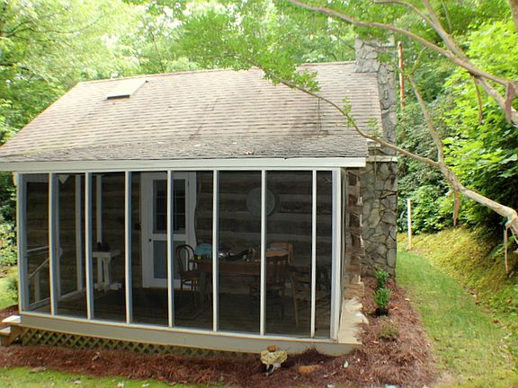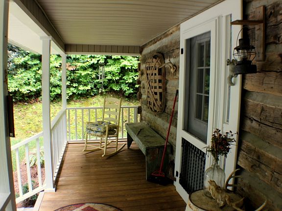 REDUCED- Beautiful secluded log cabin moved and remodeled in 1999 to present location on 2.90 acres beside a bubbling stream. The house includes all the furnishings and antiques as pictured. Sit on the rocking chair front porch and watch the deer play or go inside and enjoy the great room atmosphere. The cabin also has a bath room, roomy screened back porch and a great loft bedroom overlooking the first floor great room. Great compact KITCHEN and new SEPTIS SYSTEM have been added.