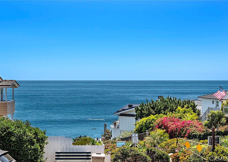 Situated just 100 yards from the sea at Crescent Bay Beach, this masterpiece rebuild features 3,267 sq ft, 3 bedrooms and 5 baths. First time on the market, this exquisitely remodeled coastal property offers an open floor plan with meticulous attention to detail in both design and appointments. A work of art by renowned architect Horst Noppenberger and builder, Andrew Williams Construction ensures both luxury design, timeless elegance and ocean living lifestyle. Imagine the enchantment of breathtaking ocean and Catalina views throughout the home and as the day draws to a close the outdoor deck becomes the front row seat as the ocean and sky transform into vibrant hues. A total remodel in 2008 with significant renovations and upgrades throughout the home. New roof, windows, doors, walls, electrical systems, new plumbing, cabinetry, counters, appliances, flooring, beams, molding, new lighting & fixtures, audio sound system, security systems w cameras, new sinks, and fixtures, new showers, tubs, tiles, generator, new insulation, ventilation, HVAC, new interior and exterior paint and ocean view deck ensuring construction with value and comfort, enhancing your living experience. Enjoy entertaining in the ocean view gourmet kitchen, equipped with top-of-the-line appliances, including a Viking dual oven with 4 burners w grill, Bosch dishwasher, Subzero wine fridge, Viking microwave, and Subzero refrigerator. Custom-built cabinets that provide ample storage throughout the home The spacious layout offers the primary bedroom and secondary bedroom, plus 2.5 baths on the main level. The primary suite is a sanctuary with ocean views, luxurious bathroom, walk in closet and mirror with TV. Downstairs features 1 large bedroom, 2 baths with an oversized family bonus room, perfect for accommodating guests or a growing family. Additionally, a dedicated laundry room provides lots of storage. This exceptional residence captures the true essence of the California Coastal Lifestyle combining superior craftsmanship, high-end finishes, and an unbeatable location. A magnificent property amidst all Laguna has to offer with its fine dining, world renowned art galleries charming shops and beaches!