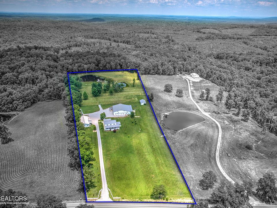 Escape the hustle and embrace the freedom of rural living with this extraordinary modern farmhouse estate, perfectly nestled on nearly 10 unrestricted acres in East Tennessee. This one-of-a-kind homestead includes a custom-built modern farmhouse with finished basement, a detached 1,400 sq ft guest house, a massive 6,000 sq ft barn with horse stalls and workshop, a pole barn, a charming ''she shed,'' and more! With fenced pastures, 2 ponds and no restrictions, this property is ideal for those seeking a serene homestead, equestrian property, or future wedding and event venue, this one-of-a-kind retreat offers space, privacy, and endless potential—all just over an hour from Knoxville.