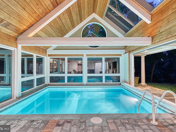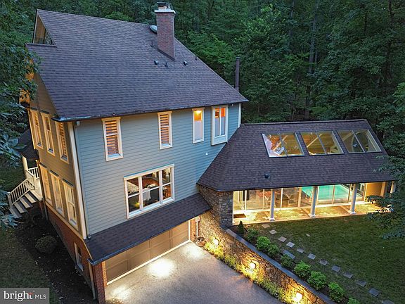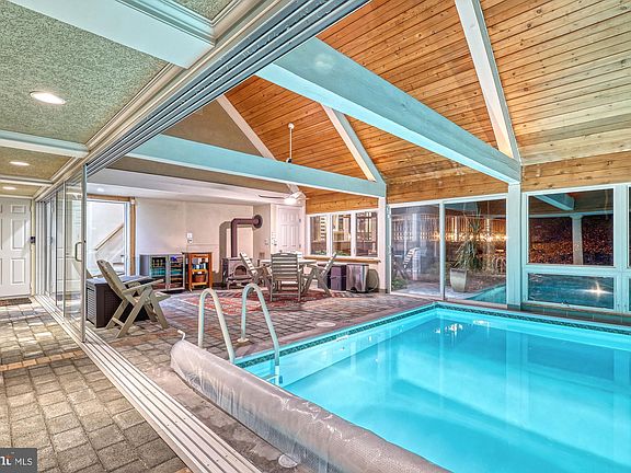 FEAUTRED on PennLive's Cool Spaces! Nestled on a wooded mountainside in the sought-after community of Whispering Oaks, this custom-built home provides you with the feeling of seclusion without sacrificing nearby amenities. A nature lover's panoramic dream with a gorgeous view from every window. This modern dwelling offers 5 generous bedrooms, 5 baths with over 4,500 SF of stunning living space on 3.37 magical acres. Warm and inviting two story foyer features a hand built, custom staircase with Brazilian cherry treads, painted risers and a turned volute. The exotic wood floors flow throughout the first floor. A gourmet kitchen you might see while paging through Architectural Digest. Custom cabinetry built from a beautiful species of white oak logged right on the property. Ceiling beams of the same species and a reverse tray ceiling with hammered dome pendant lights and rail lights create a beautifully dimensional, mood setting space. Quartz countertops and center island work station with NeoLith countertop - 100% natural, heated and pressurized for one of the world's most durable surfaces. Graciously arched picture window and dual casement transoms span the counter with the kitchen sink. Convenient prep sink and a window pass through to the cedar grilling deck and dining area. Vaulted breakfast sunroom with exposed beams catches the morning sun. Elegant sliding French doors lead to the formal living room with floor to ceiling windows, hand hewn wooden ceiling beams and double-sided wood burning fireplace with handcrafted mantel and arched hearth. Formal dining room with crown molding, chair rail and floor to ceiling windows feels like you are dining in the treetops. The family room has built-in bookshelves, wood beams and the warmth and ambiance of a wood burning fireplace. Full bath and laundry complete the first floor. Generously sized owner’s suite, complete with vaulted ceiling, exposed wood beams, custom Hunter Douglas blackout blinds, large walk-in closet and private bath with tile shower, furniture quality vanity and step in jacuzzi tub! Three additional generously sized bedrooms, ensuite bath, laundry room with utility sink and full bath. Hunter Douglas blinds. Additional bonus room on the third floor can be used as a 5th bedroom. Maybe a place for billiards or an office. A striking lanai styled indoor heated pool area is an absolute show-stopper. Vaulted ceiling with tongue and groove wood planking and giant cross beams with a full moon eclipse window and celestial viewing skylights. 32’ sliding glass wall opens the entire length of the wall to outdoor pillars and a covered patio with coffered dryvit, crown trim and recessed lighting. Grey pavers with red brick colored soldiering courses. This home is a work of art. Modern and warm with an emphasis on nature. Rejuvenate and unwind, everyday.