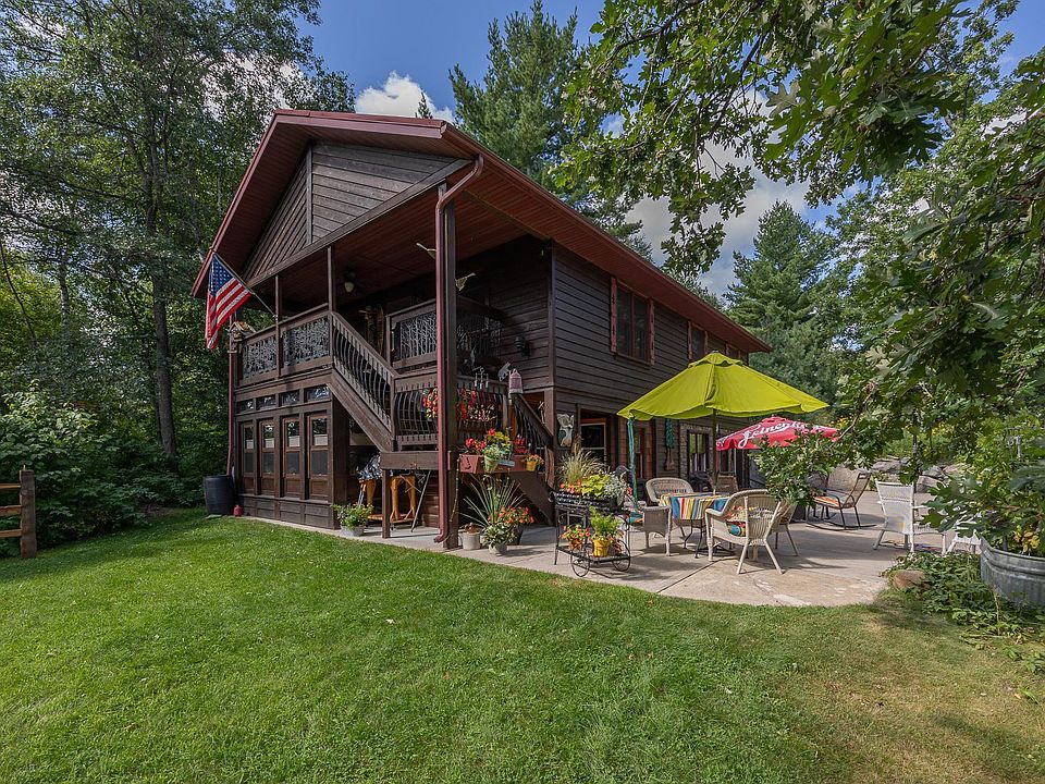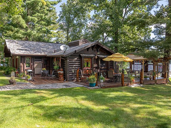 The Lake Cabin! This 1,104 SF lodge styled home features an immense primary BR w/loft, a copper sink in the kitchen, a one-of-a-kind wood fireplace, LP heat and a sprawling outside deck with an open sided gazebo – all on the water’s edge.