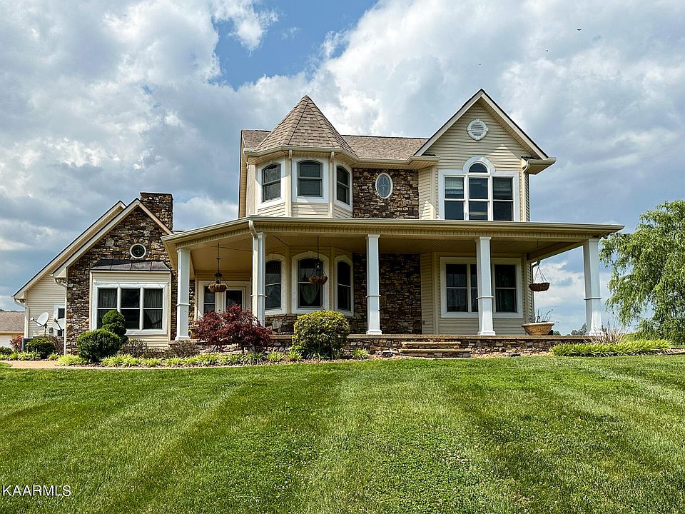 Absolutely breathtaking custom-built home situated on a private knoll with panoramic magnificent mountain views and just minutes from LMU Main Campus in Harrogate. Entering the home, you are greeted by a vaulted den with a stone fireplace extending to the ceiling built with natural mountain stone. Large kitchen with granite counter tops and an island with stainless steel appliances. Spacious formal dining room accented with multiple wood trimmed windows which is perfect for entertaining. Master suite on the main floor complete with walk-in tile shower, jacuzzi tub and his/her closets. Follow the first set of stairs designed with solid oak custom railing upstairs to three bedrooms, two full bathrooms and an office/study. A second set of stairs from the den takes you to a large bonus room and extra storage rooms. Outside, you will find an in-ground pool complete with a pool house that has an extra washer/dryer hook-up along with a full bathroom and walk-in shower. Along with the large two-car garage attached to the house, there is also a three-car garage situated conveniently next to the home perfect to store Side-by-Sides, ATVs, Boats, etc. No ounce of detail is spared in this impressive home from the natural mountain stone outside and inside, custom solid oak staircases and solid oak doors throughout.