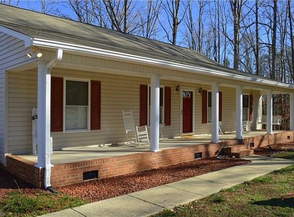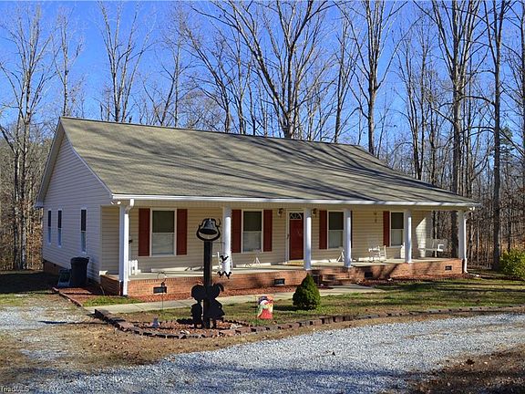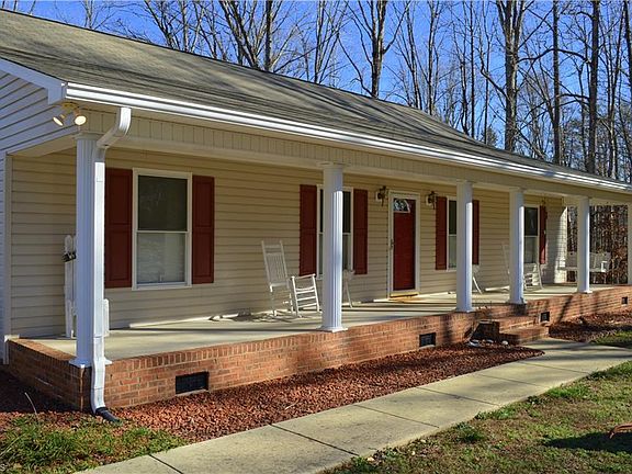 Ranch style home nestled off private, secluded driveway. 50' x 7' covered rocking chair front porch overlooking expansive yard. Small stream on rear property line. Heat Pump replaced in 2014. Wired for generator. Double hung vinyl windows. Storage Building (30'x 12') Huge eat-in Kitchen featuring tons of cabinet space, range/oven, dishwasher and ceiling fan Separate laundry room. Wood floors in LR. Split BR plan. MBR wing with office nook/nursery and walk-in closet! A Must See