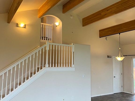 3 bed, 2 bath 1,460sf duplex home with mountain views in a convenient commute location in Palmer. This is a spacious open concept home with lots of natural light and recently updated stainless steel appliances, has gas fireplace. The back yard is private and fully fenced with a large gate. There is no other homes located behind this property, it backs up to a nice tree covered hill-line giving lots of privacy. HVAC system, water filtration system, water softening system, high ceilings with exposed beams in the downstairs living area and entire second floor. First Floor: Master bedroom, 1 full bathroom, living room, kitchen and dining room. Second Floor: 2 bedrooms, full bathroom, and bonus area/room. Currently used as a homeschool room, excellent size for office or play space. This is a family-friendly neighborhood, just one stoplight between you and Anchorage and a few minutes away from shopping in Palmer. Take the paved bike path to downtown for the Friday fling or summer concerts. *PLEASE READ* Landlord will pay for water, tenant agrees to cover all other utilities, trash, snow removal and lawn care. NO SMOKING whatsoever on premises. No pets. Applicants must provide references and we will also run a background and credit check. $2100 per month, $2100 deposit, one year lease. Landlord will pay for water, tenant agrees to cover all other utilities, trash, snow removal and lawn care. Property is available November 1, 2024. Please have application submitted before requesting to schedule a showing. We will start showing the property in September.