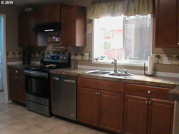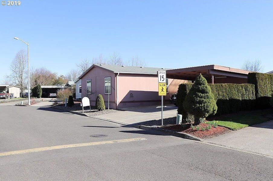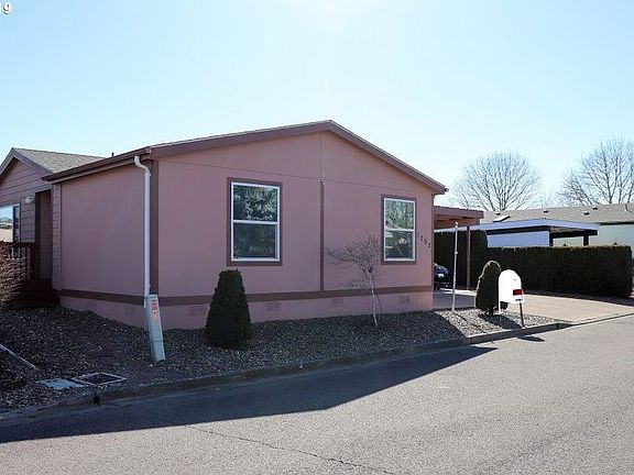 Manufactured Home Park in a Quiet Neighborhood .Large sized,Private, fenced back yard with 10X10 patio & 10X10 extra tall storage shed. Parking for 4 cars in Carport,Upgraded kitchen, stainless appliances. Windows are Mirror tinted for Privacy,New HOT Water heater.New floor covering in kitchen & Dining room. Painting in progress.