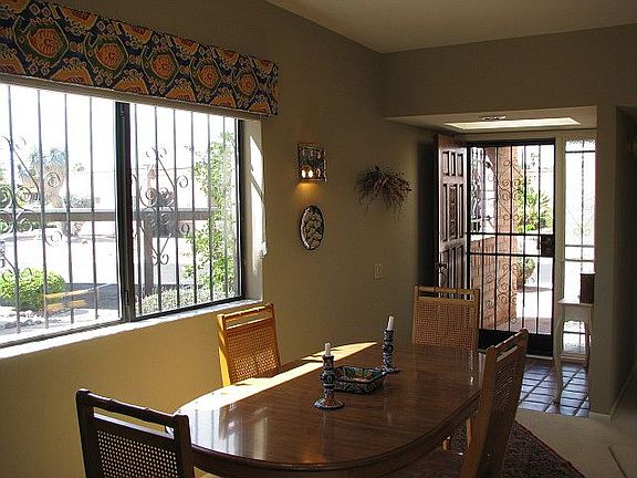 RARE, two bedroom, two bath casita with expanded living room and a wall of windows overlooking the golf course. This home is on a long cul-de-sac, with very little traffic. It overlooks the beautiful Desert Hills Golf Club. Join and drive your golf cart to play! Also, enjoy Green Valley Recreation. GVR members have access to 13 centers, pools and spas, six fitness centers, tennis, pickleball and other sports courts, over 1,000 classes, and lectures, 60+ clubs of various interests and fine and professional arts and entertainment presented in GVR’s West Center for Performing Arts. Newer refrigerator and microwave, new stove and dishwasher. Unit also has two covered parking spaces and is very light and bright. For sale fully furnished with bedding, pots and pans, dishes, flatware, and ready to move in. Don't miss out on this opportunity.