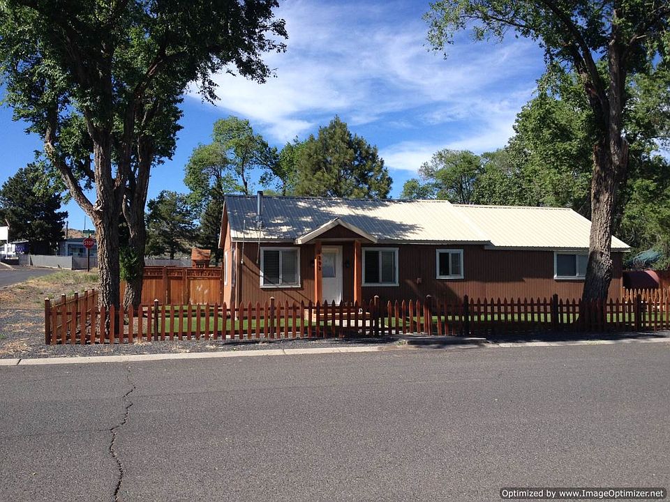 Backyard Play Ground! Here is a great home in Burns that has recently been updated to be a cozy comfortable place to live. This home exhibits pride of ownership for sure. The house sits on a great corner lot in Burns. The property is bordered by very nice wood fencing, making a great private space in the back yard, safe for children and pets to play, and great for those backyard BBQ's. The yard and grass are in great condition thanks to an underground sprinkler system. The 3 bed/1bath home was updated in 2011 with a new metal roof, vinyl windows, and improvements to the interior. The kitchen shows those improvements with updated kitchen cabinets and efficient layout. The bathroom was also updated with new sink and cabinets and large tile flooring. The floor plan is open and inviting. The dining area is a great place to gather and offers a built in China cabinet. This house has several sources of heat available with a wood stove, oil monitor floor furnace, and electric baseboard heaters. The wood stove does most of the work however, and keeps the place very comfortable.